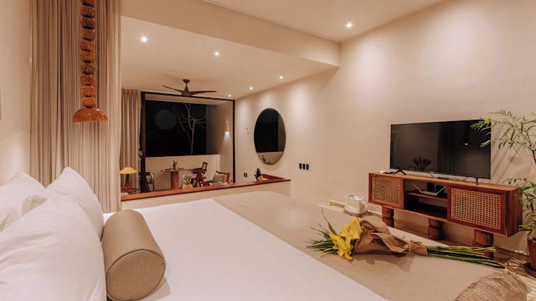 Die Zimmer der Unterkunft Bacab Tulum sind mit Klimaanlage, einer voll ausgestatteten Küche, einem Essbereich, einem Flachbild-TV und einem eigenen Badezimmer mit Dusche, kostenlosen Pflegeprodukten und einem Haartrockner ausgestattet. Einige Zimmer verfügen darüber hinaus über eine Terrasse oder einen Balkon mit Stadt- oder Poolblick.