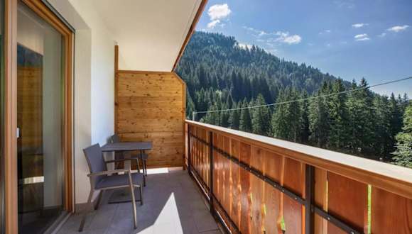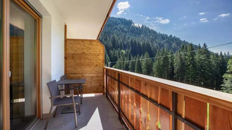 Die Ferienwohnung beinhaltet ein Schlafzimmer, ein Wohnzimmer, einen Fernseher, eine gut ausgestattete Küche mit Kühlschrank und Geschirrspüler sowie ein Badezimmer mit Dusche. Ein Balkon mit Bergblick ist ebenfalls vorhanden, und Handtücher sowie Bettwäsche werden bereitgestellt.