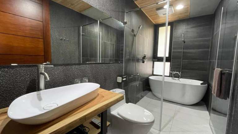 Die Wohneinheiten verfügen über ein eigenes Badezimmer, das mit einer Dusche und einem Haartrockner ausgestattet ist. Hausschuhe sind ebenfalls in jeder Einheit vorhanden.
