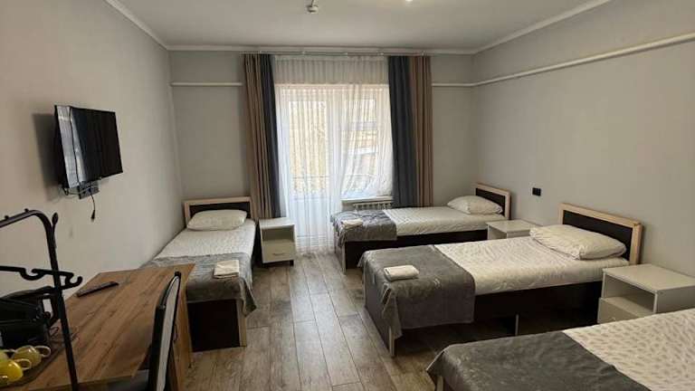 Die Zimmer im Bagysh Hotel sind mit modernen Annehmlichkeiten ausgestattet, darunter ein Wasserkocher, ein TV, ein Haartrockner und ein eigenes Badezimmer mit kostenlosen Pflegeprodukten. Ausgewählte Zimmer verfügen über einen Balkon, während andere einen Blick auf die Berge bieten. Zudem sind die Zimmer schallisoliert, und es stehen Nichtraucherzimmer zur Verfügung.