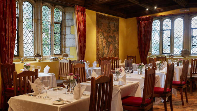 Das Bailiffscourt Hotel & Spa bietet verschiedene Möglichkeiten zum Speisen. Das elegante Tapestry Restaurant besticht durch seine mittelalterliche Architektur, gotische Fenster und Wandbehänge. Hier können die Gäste moderne englische Küche genießen. Für eine private Atmosphäre stehen der Wintergarten, der Musikraum mit offenem Kamin und die normannische Kapelle zur Verfügung. Der rosenbewachsene Hof bietet einen lockeren Rahmen für ein leichtes Mittagessen und den traditionellen Nachmittagstee.