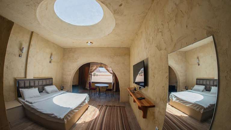 Im Bait Ali können Sie zwischen Beduinenzelten und Chalets wählen, die Ihnen eine authentische Erfahrung bieten. Einige Unterkünfte verfügen über ein eigenes Bad, während andere Gemeinschaftsbäder nutzen. Die Gemeinschaftsbäder sind mit modernen Duschen und WCs ausgestattet. Die Unterkünfte sind komfortabel und bieten Ihnen eine gemütliche Atmosphäre, in der Sie sich entspannen und die Schönheit des Wadi Rum genießen können.
