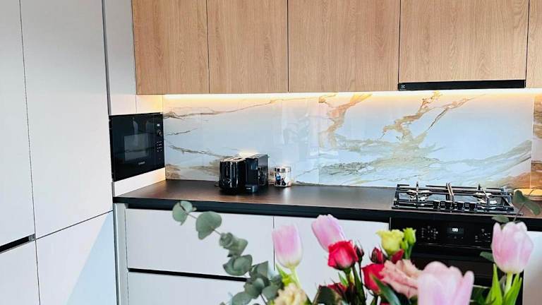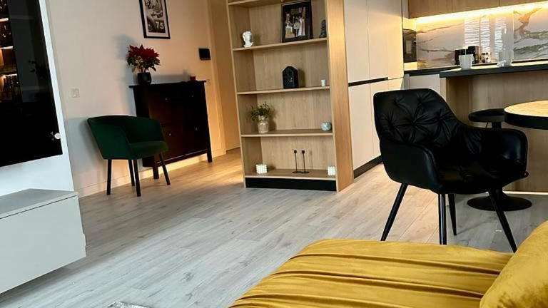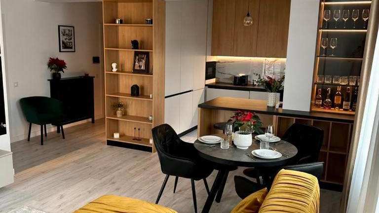 Die Ferienwohnung besitzt ein Schlafzimmer und eine vollständige Küche, ausgestattet mit einem Kühlschrank und einem Geschirrspüler. Ein Flachbild-TV, ein Sitzbereich sowie ein Badezimmer mit Bidet sind ebenfalls vorhanden. Handtücher und Bettwäsche werden bereitgestellt.