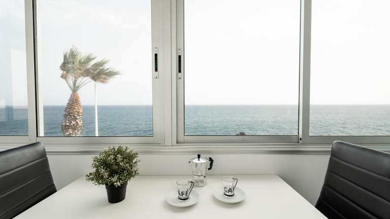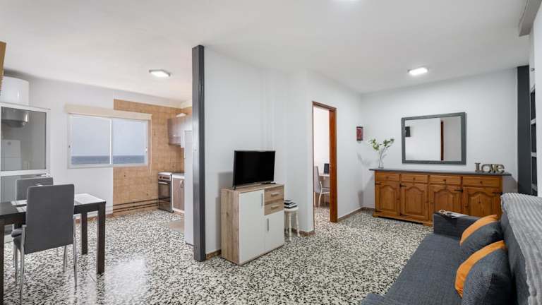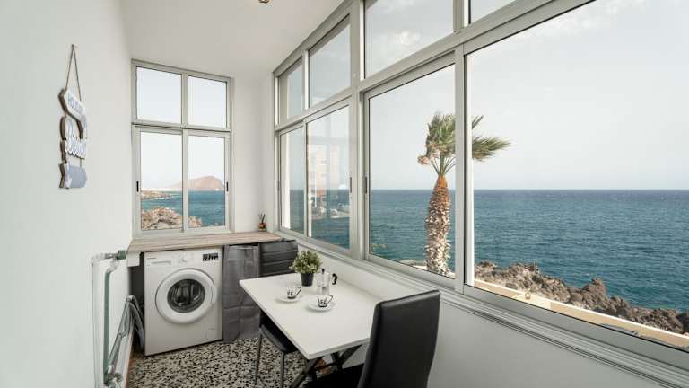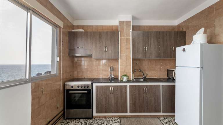 Die Ferienwohnung verfügt über zwei Schlafzimmer, ein Wohnzimmer, eine gut ausgestattete Küche mit Kühlschrank und Mikrowelle, ein Badezimmer mit Dusche sowie einen Balkon mit Meerblick. Handtücher und Bettwäsche werden bereitgestellt.