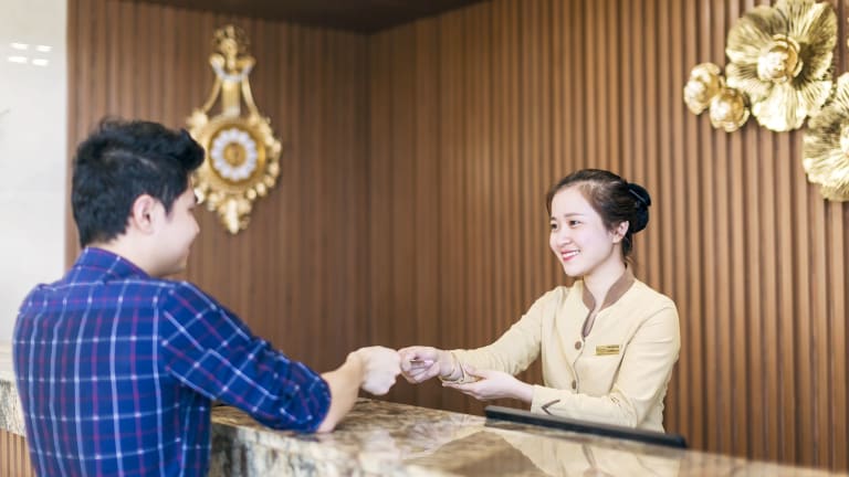 Das Balcona Hotel Da Nang bietet Übernachtungsmöglichkeiten in Đà Nẵng und ist mit einem Fitnesscenter, einer Terrasse und einem Restaurant ausgestattet. Das Hotel verfügt über eine rund um die Uhr besetzte Rezeption, die den Gästen bei Fragen behilflich ist. Zu den Annehmlichkeiten gehören eine Gepäckaufbewahrung, ein Safe, eine Wechselstube und WLAN. Die Einrichtung hält auch Angebote wie einen Babysitterservice, Autovermietung und medizinische Betreuung bereit. Einige Zimmer sind behindertengerecht.
