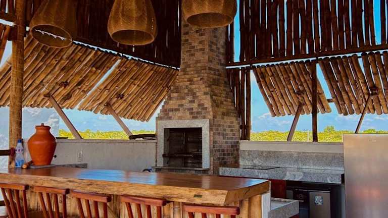 Das Bali BG Casa Bamboo ist eine ideale Unterkunft in Barra Grande, nur wenige Schritte vom wunderschönen Strand Praia de Barra Grande entfernt. Hier erwartet Sie ein komfortables Ferienhaus mit eigenem Pool, einem Garten und kostenfreien Privatparkplätzen. Genießen Sie Ihren Aufenthalt in diesem klimatisierten Ferienhaus mit 3 separaten Schlafzimmern, einem geräumigen Wohnzimmer und einer voll ausgestatteten Küche. Entspannen Sie am Außenpool, nutzen Sie die Terrasse und den Grill und lassen Sie sich von einem Flachbild-TV unterhalten. Der internationale Flughafen Parnaiba liegt nur 72 km entfernt.