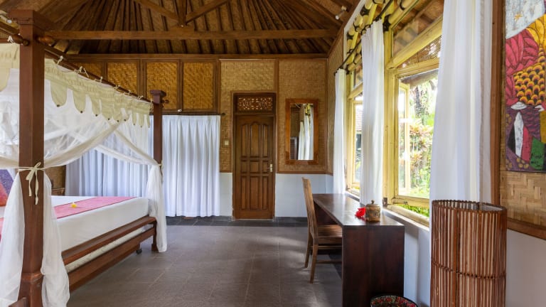 Erleben Sie einen erholsamen Aufenthalt im Bali Firefly BnB in Ubud. Genießen Sie den Blick auf den Garten, entspannen Sie am Außenpool und halten Sie sich im Fitnesscenter fit. WLAN ist in allen Bereichen kostenfrei verfügbar. Die Unterkünfte sind mit einem eigenen Bad ausgestattet, das kostenlose Pflegeprodukte und einen Haartrockner bietet. Beginnen Sie Ihren Tag mit einem köstlichen kontinentalen, vegetarischen oder veganen Frühstück. Das Bed & Breakfast bietet zudem einen Fahrradverleih und eine Autovermietung, um die Umgebung zu erkunden. Genießen Sie Radtouren und besuchen Sie Sehenswürdigkeiten wie das Blanco Museum und den Saraswati-Tempel. Der internationale Flughafen Denpasar ist nur 33 km entfernt.