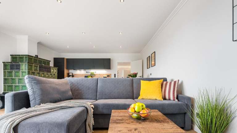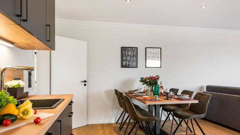Die Ferienwohnung verfügt über zwei Schlafzimmer, ein Wohnzimmer mit TV sowie eine gut ausgestattete Küche, zu der ein Kühlschrank und ein Geschirrspüler gehören. Ein Badezimmer mit Dusche ist ebenfalls vorhanden. WLAN ist in allen Bereichen kostenlos verfügbar.