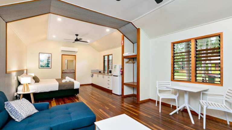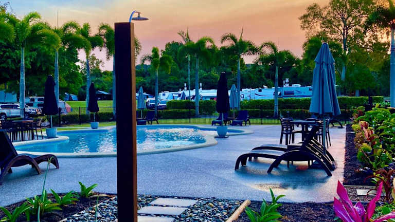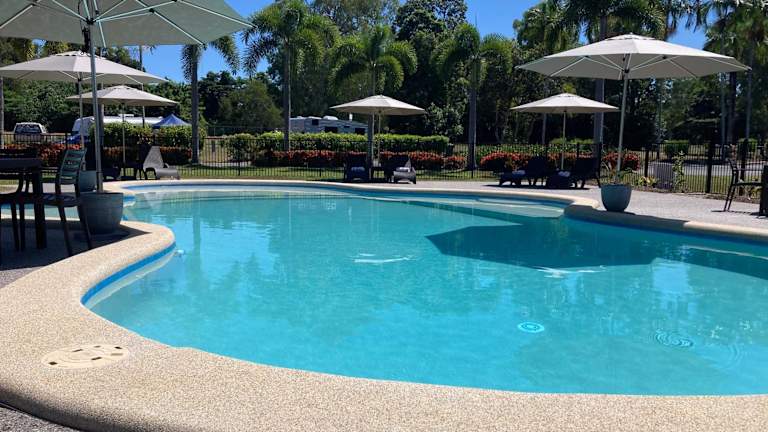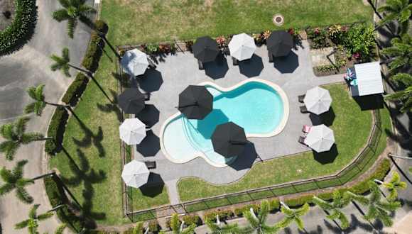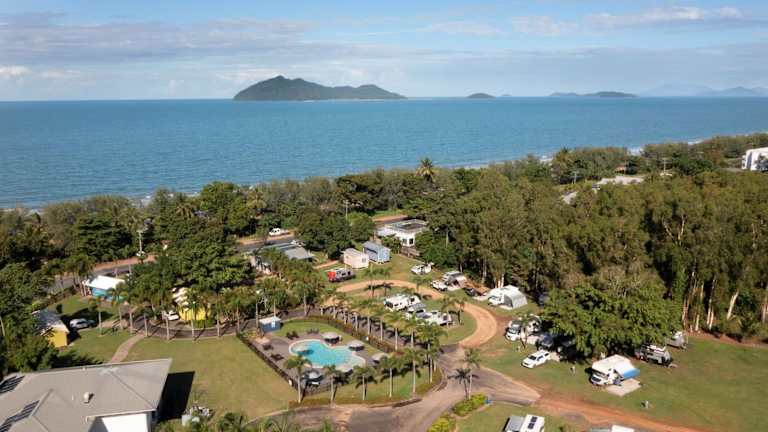 Bali Hai Child Free Holiday Park Mission Beach bietet Übernachtungsmöglichkeiten mit kostenlosem WLAN und Klimaanlage. Die Gäste haben Zugang zu einem Garten mit Außenpool und genießen den Meerblick von ihrem Balkon.