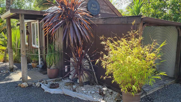 Das Bali Haven in Coromandel Town bietet eine einzigartige Unterkunft in einem Chalet zur Selbstverpflegung. Umgeben von Bio-Gärten und einheimischem Buschland, können Sie hier eine entspannte Atmosphäre genießen. Die Gäste haben Zugang zu einer Gemeinschaftsküche im balinesischen Stil und einem Gemeinschaftsbad.