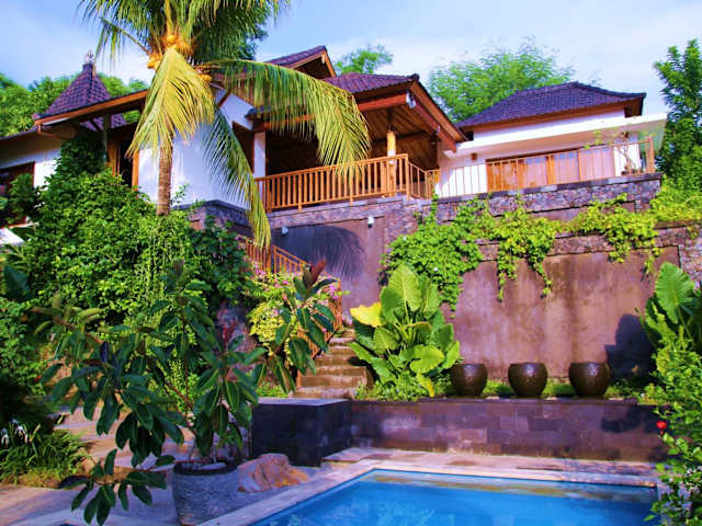Die Bali Marina Villa's in Amed heißen Sie herzlich willkommen und bieten Ihnen eine erholsame und authentische Erfahrung auf einem Hügel mit Meerblick. Genießen Sie den Außenpool, das Restaurant und den kostenfreien WLAN-Zugang. Die klimatisierten Villen verfügen über eine Terrasse, einen Kleiderschrank und ein Moskitonetz. Der Essbereich ist mit einem Kühlschrank, einem Wasserkocher und einer Minibar ausgestattet. Das eigene Bad bietet eine Dusche, eine Badewanne und einen Haartrockner. Von Ihrem Zimmer aus haben Sie einen herrlichen Blick auf das Meer und den Pool. Das Restaurant der Bali Marina Villa's verwöhnt Sie mit frisch zubereiteten balinesischen und indonesischen Gerichten. Ein Zimmerservice steht Ihnen ebenfalls zur Verfügung. Das freundliche Personal der 24-Stunden-Rezeption bietet Ihnen einen Parkservice sowie die Organisation von Mietwagen, Flughafentransfers und Shuttleservices gegen Aufpreis. Wassersportmöglichkeiten, ein Tourenschalter und eine Gepäckaufbewahrung gehören ebenfalls zu den Annehmlichkeiten der Unterkunft. Kostenfreie Parkplätze stehen Ihnen zur Verfügung. Die Bali Marina Villa's liegen nur 5 Fahrminuten vom Zentrum von Amed entfernt. Der internationale Flughafen Ngurah Rai ist in etwa 3,5 Stunden erreichbar.