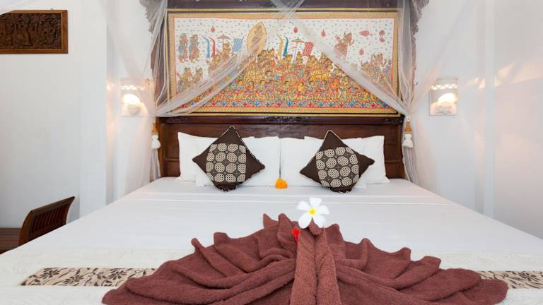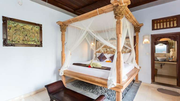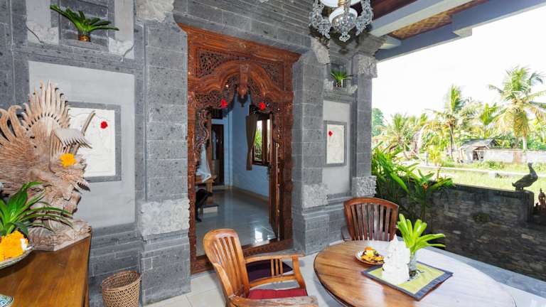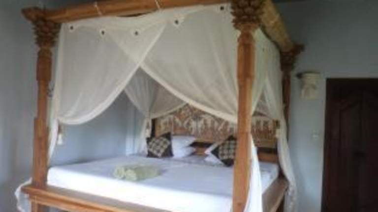 Die Zimmer im Bali Moon Guest House sind im traditionellen balinesischen Stil eingerichtet und bieten Ihnen eine gemütliche und authentische Atmosphäre. Sie haben die Wahl zwischen Zimmern mit Ventilator oder Klimaanlage. Jedes Zimmer verfügt über ein komfortables Himmelbett mit Moskitonetz und eine private Terrasse oder einen Balkon, von dem aus Sie die grüne Umgebung genießen können. Im Badezimmer finden Sie eine Warmwasserdusche und eine Badewanne für erholsame Momente.