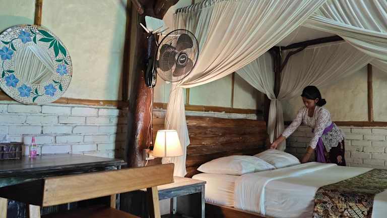 Das Bali Mountain Forest Cabin in Penebel bietet Ihnen einen traumhaften Aufenthalt inmitten der Natur mit einem atemberaubenden Bergblick. Genießen Sie die Ruhe und Entspannung in diesem charmanten Lodge-Hotel. Das kostenfreie WLAN, der Garten und die Terrasse sorgen für zusätzlichen Komfort. Starten Sie jeden Morgen mit einem köstlichen vegetarischen und Halal-Frühstück in den Tag. Die Lodge bietet außerdem kostenfreie Privatparkplätze und eine Gemeinschaftsküche. Erkunden Sie die Umgebung mit dem Fahrrad, das Sie vor Ort ausleihen können. Sehenswürdigkeiten wie der Tempel Tanah Lot und das Blanco Museum befinden sich in der Nähe. Der internationale Flughafen Denpasar ist ebenfalls gut erreichbar.