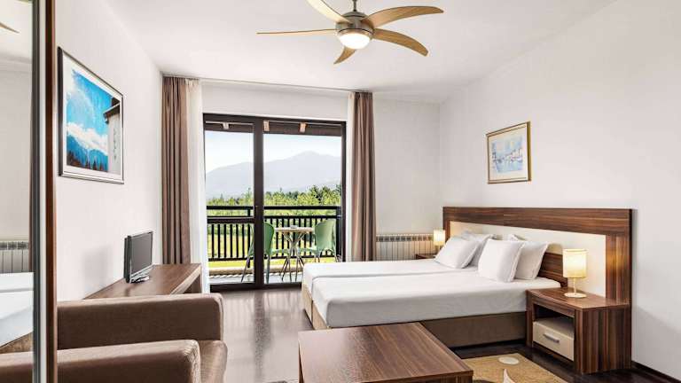 Das Hotel befindet sich in Bansko und bietet einen herrlichen Blick auf den Ian Woosnam Golfplatz. Es liegt in der Razlog Valley und ist von den Bergen Pirin, Rila und Rhodopen umgeben. Die Talstation der Seilbahn des Plose Ski- und Wandergebiets befindet sich in unmittelbarer Nähe. Das Stadtzentrum von Bansko ist ebenfalls leicht erreichbar.