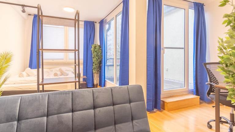 Die Ferienwohnung Balkon, 4k TV, Kaffee, Netflix verfügt über einen Balkon und bietet eine moderne Ausstattung. Kostenloses WLAN und ein Geldautomat stehen den Gästen zur Verfügung.