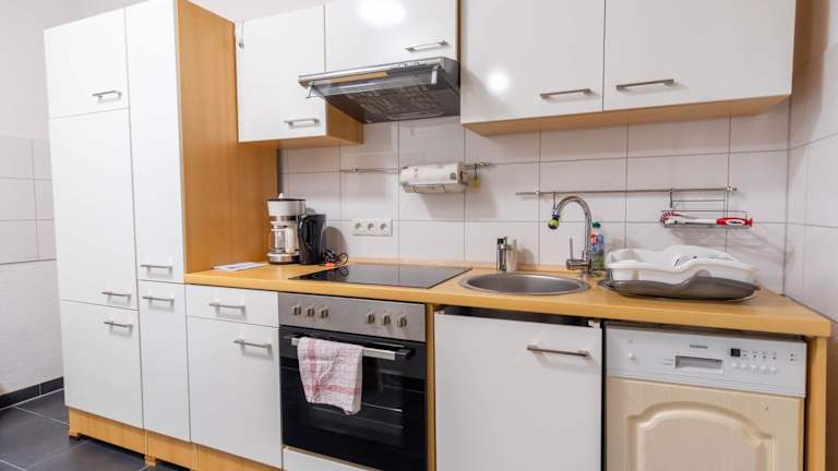 Die Ferienwohnung umfasst ein Schlafzimmer, ein Wohnzimmer und ein Bad mit Dusche. Zur Ausstattung gehören ein Flachbild-TV, eine gut ausgestattete Küche mit Kühlschrank und Geschirrspüler sowie ein Balkon mit Gartenblick. Handtücher und Bettwäsche werden bereitgestellt.