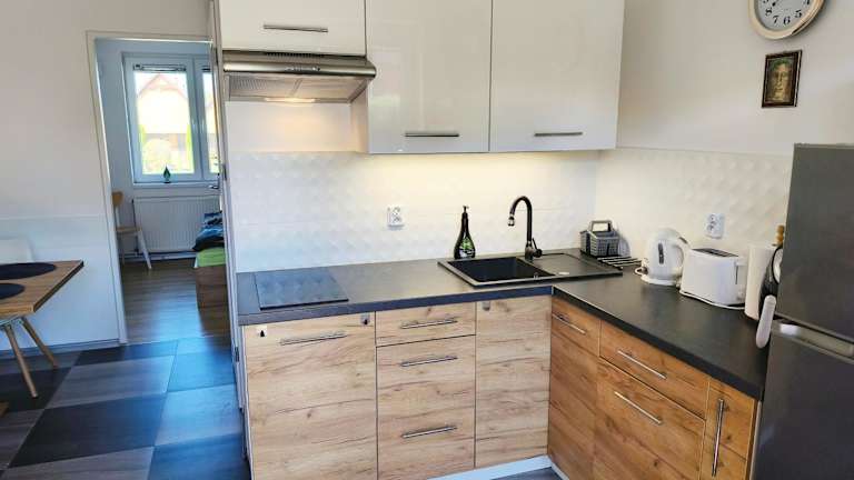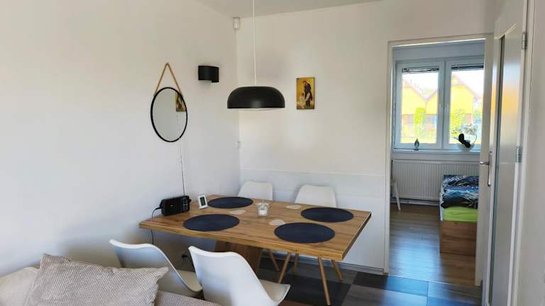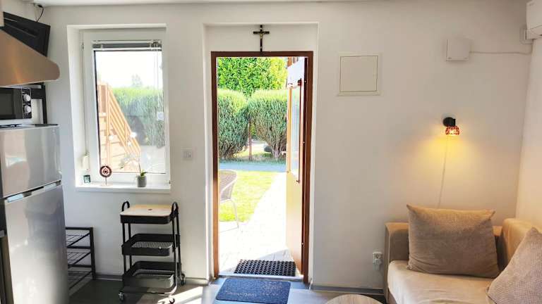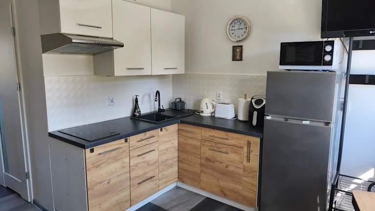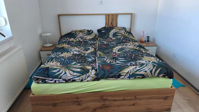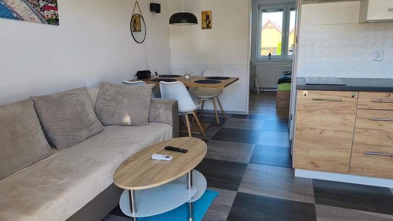 Die Ferienwohnung verfügt über 1 Schlafzimmer, ein Wohnzimmer und eine voll ausgestattete Küchenzeile mit Kühlschrank und Wasserkocher. Zudem gibt es ein Badezimmer mit Dusche und Haartrockner. Die Unterkunft ist klimatisiert und bietet Nichtraucherzimmer sowie Familienzimmer.
