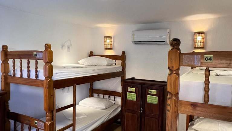 Das Bamboo Búzios Hostel bietet eine Auswahl an Zimmern, von denen einige einen atemberaubenden Meerblick bieten. Alle Zimmer sind mit Annehmlichkeiten wie einem Flachbild-Kabel-TV, einer Minibar, einem Haartrockner und einem Balkon ausgestattet. Einige Zimmer verfügen auch über private Schließfächer und eine Klimaanlage, um Ihren Aufenthalt so angenehm wie möglich zu gestalten.