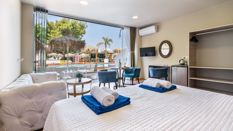 Das Bamboo Suites Hotel in Ialyssos ist der ideale Ort für einen entspannten Urlaub auf Rhodos. Das Hotel bietet komfortable Zimmer, ein hauseigenes Restaurant und eine schöne Terrasse. Genießen Sie die Nähe zum Strand und erkunden Sie die Sehenswürdigkeiten der Umgebung.
