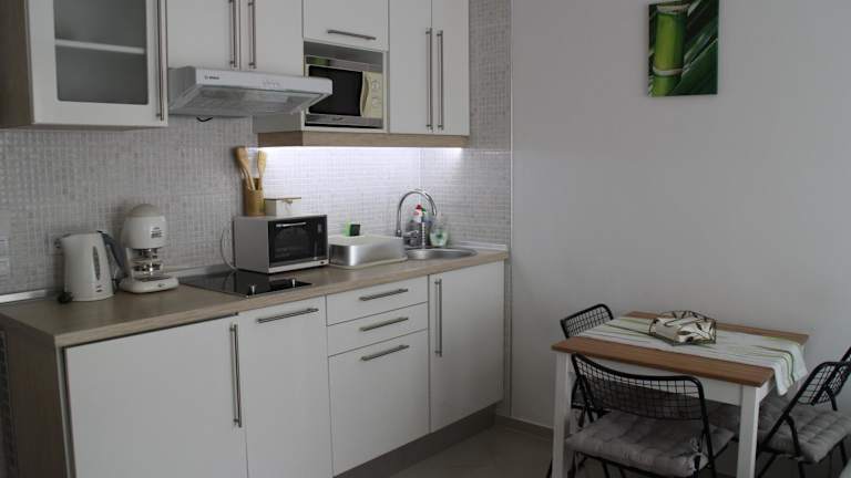 Die Ferienwohnung besteht aus 1 Schlafzimmer, einem Wohnzimmer und einer voll ausgestatteten Küche, die mit einem Kühlschrank und einer Kaffeemaschine ausgestattet ist. Zudem sind ein Badezimmer mit Dusche und Haartrockner sowie die Bereitstellung von Handtüchern und Bettwäsche vorhanden. Die Unterkunft hat klimatisierte und allergikerfreundliche Zimmer, die Nichtraucherzimmer sind.