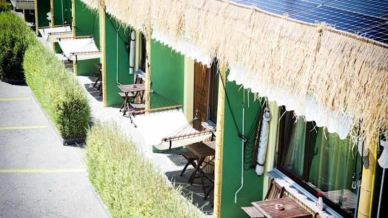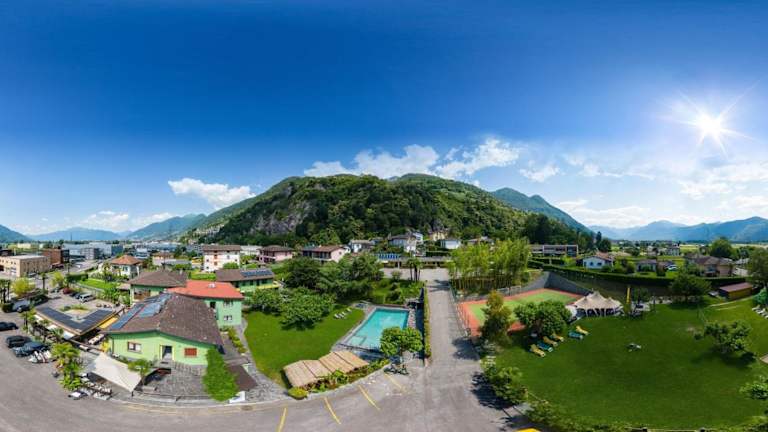 Das Bamboohouse Motel in Riazzino ist ein wunderbarer Ort, um Ihren Urlaub zu verbringen. Das Motel bietet eine entspannte Atmosphäre, umgeben von einer beeindruckenden Bambus- und Palmenlandschaft. Genießen Sie den Pool und die großzügige Liegewiese mit verschiedenen Sport- und Freizeitmöglichkeiten. Das Restaurant mit Bar verwöhnt Sie mit einem reichhaltigen Frühstücksbuffet und einer abwechslungsreichen Auswahl an internationalen Gerichten. Die Zimmer sind komfortabel und bieten einen schönen Blick auf den Garten sowie einen eigenen Eingang. Ein Parkplatz steht direkt vor jedem Zimmer zur Verfügung. Entdecken Sie die Umgebung und besuchen Sie die nahe gelegenen Städte Bellinzona, Locarno und Tenero. Eine Bushaltestelle befindet sich direkt vor dem Hotel, so dass Sie bequem die Umgebung erkunden können.