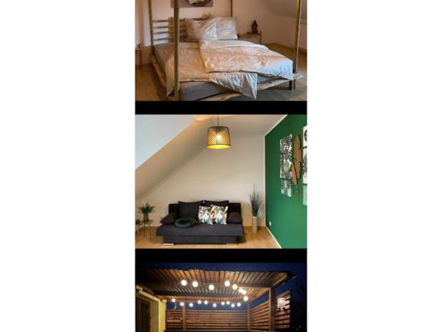 Bambus, Jungle, Dachterrasse & bequem bis Zentrum bietet eine komfortable Ferienwohnung mit Zugang zu einer Terrasse sowie einem Balkon. Zudem steht den Gästen ein Kinderspielplatz zur Verfügung. Kostenloses WLAN ist in der gesamten Unterkunft verfügbar.