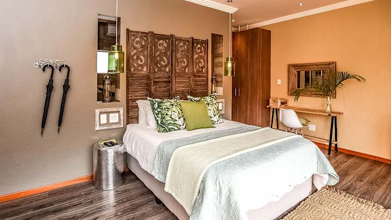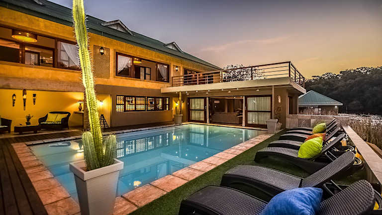 Die Bambuu Lakeside Lodge liegt in einer ruhigen Gegend, etwa 17 km von der Stadt Hazyview entfernt. Sie bietet einen einzigartigen Blick auf einen eigenen See und die umliegenden Wälder. Die Lodge ist ein idealer Ausgangspunkt für Ausflüge in den nahegelegenen Krüger-Nationalpark, wo Sie die faszinierende Tierwelt Afrikas entdecken können. Der nächstgelegene Flughafen, der Kruger Mpumalanga International Airport, ist etwa 39 km entfernt und ein Flughafentransfer kann arrangiert werden.