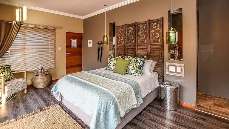Die Bambuu Lakeside Lodge ist eine idyllische Unterkunft, die 17 km von Hazyview entfernt liegt und Ihnen einen erholsamen Aufenthalt inmitten der Natur bietet. Mit einem eigenen See und Blick auf die heimischen Wälder können Sie hier die Schönheit der Umgebung genießen. Die Zimmer und Unterkünfte sind geschmackvoll gestaltet und bieten klare Seeblicke sowie Zugang zum Außenpool. Die Lodge bietet auch verschiedene Aktivitäten wie Radfahren und Angeln an, und Safaris können organisiert werden. Der Krüger-Nationalpark ist ebenfalls in der Nähe, so dass Sie die Tierwelt Südafrikas erkunden können.