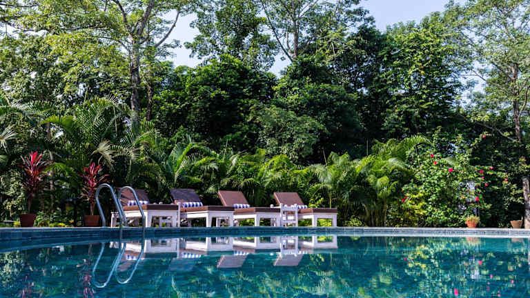 Banbas Resort, Chitwan bietet Unterbringungsmöglichkeiten mit einem Außenpool, kostenlosem Privatparkplatz, einem Garten und einem Restaurant. Es gibt auch eine Bar sowie verschiedene Wassersportmöglichkeiten. Die Unterkunft stellt Zimmerservice und kostenloses WLAN zur Verfügung.