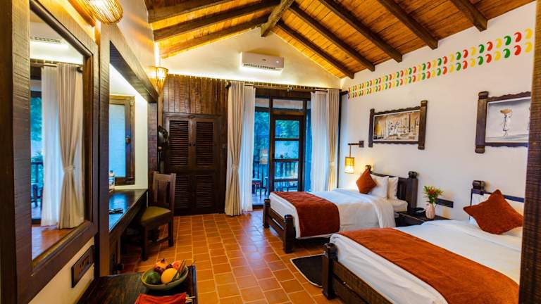 Die Gästezimmer im Banbas Resort, Chitwan sind klimatisiert und verfügen über einen Schreibtisch, einen Flachbild-TV sowie ein eigenes Badezimmer. Jedes Zimmer ist mit Bettwäsche, Handtüchern und einem Balkon mit Poolblick ausgestattet. Darüber hinaus gibt es einen Kleiderschrank und einen Wasserkocher.