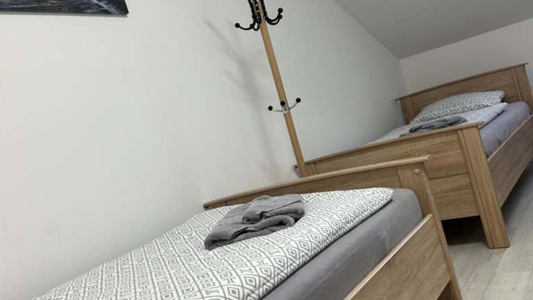 Die Ferienwohnung umfasst 2 Schlafzimmer, ein Wohnzimmer und eine voll ausgestattete Küche, die mit einem Kühlschrank und einer Kaffeemaschine ausgestattet ist. Zudem steht ein Badezimmer mit Badewanne oder Dusche und Haartrockner zur Verfügung. Handtücher und Bettwäsche werden bereitgestellt.