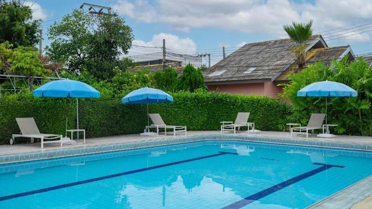 • Schöner Poolbereich mit tropischer Vegetation, ideal für Erholung.