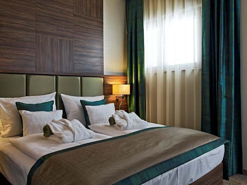 STANDARD DOPPEL- ODER ZWEIBETTZIMMER Über dem Standardniveau realisierte Einrichtung der Interieure, in denen bequeme und komfortable Elemente verwendet werden. Die Zimmer verfügen über Badezimmer mit Duschkabine und teilweise eigenen Balkon. Zimmergröße: 18 – 22 m2. Zimmerausstattung: Klimaanlage, Haartrockner, Minibar, LCD Fernseher, Radio, Telefon, Safe Unsere Zimmerpreise enthalten: Buffetfrühstück, freie Benutzung des Bades und der Saunalandschaft, Bademantelbenutzung (auch für Kinder), kostenloser WIFI Internet Anschluss im ganzen Bereich des Hotels, gebührenfreie Parkplätz Zimmerkapazität: max. 2 Erwachsene (keine Möglichkeit für Zusatzbetten) Lage der Zimmer: in der ersten und zweiten Etage STANDARD PLUS DOPPELZIMMER Über dem Standardniveau liegende Innenausstattung, die hohen ästhetischen Anforderungen entspricht. Die Zimmer verfügen über ein ausziehbares Sofa, ein Badezimmer mit Badewanne und einen eigenen Balkon. Zimmergröße: 25 – 28 m2. Zimmerausstattung: Klimaanlage, Haartrockner, Minibar, LCD Fernseher, Radio, Telefon, Safe Unsere Zimmerpreise enthalten: Buffetfrühstück, freie Benutzung des Bades und der Saunalandschaft, Bademantelbenutzung (auch für Kinder), kostenloser WIFI Internet Anschluss im ganzen Bereich des Hotels, gebührenfreie Parkplätze, Kaffee- und Tee-Set Zimmerkapazität: max. 3 Erwachsene oder max. 2 Erwachsene und 2 Kinder unter 12 Jahren Lage der Zimmer: im Erdgeschoss und in der ersten und zweiten Etage Anzahl des Doppelzimmers mit Verbindungstür: 3 FAMILIENZIMMER Für die Hotelgäste mit Kindern haben wir spezielle Familienzimmer mit einem separaten, kleinen Kinderzimmer eingerichtet. Diese Zimmer sind modern und komfortabel ausgestattet, folgen einem dezent anspruchsvollen Stil. Die Zimmer verfügen über ein Badezimmer mit Badewanne und einen eigenen Balkon. In einigen Zimmern gibt es Etagenbett. Zimmergröße: 30 m2 Zimmerausstattung:Klimaanlage, Haartrockner, Minibar, LCD Fernseher, Radio, Telefon, Safe Unsere Zimmerpreise enthalten: Buffetfrühstück, freie Benutzung des Bades und der Saunalandschaft, Bademantelbenutzung (auch für Kinder), kostenloser WIFI Internet Anschluss im ganzen Bereich des Hotels, gebührenfreie Parkplätze Zimmerkapazität: max. 3 Erwachsene oder max. 2 Erwachsene und 2 Kinder Lage der Zimmer: im Erdgeschoss, in der ersten und zweiten Etage Anzahl der Familienzimmer mit Verbindungstür: 3 SUITE Viel Raum zum Entspannen und wohlfühlen bieten unsere Suiten. Das Badezimmer ist sowohl mit Badewanne als auch mit Duschkabine ausgestattet. "Bergeron" Suite (55 m2): Infrasauna, spezielle Massagewanne, Sonnenbetten und Jacuzzi auf dem Balkon "Bíbor" Suite (50 m2): Infrasauna, spezielle Massagewanne, Esstisch Zimmerausstattung: Klimaanlage, Haartrockner, Minibar, LCD Fernseher, Radio, Telefon, Safe Unsere Zimmerpreise enthalten: Buffetfrühstück, freie Benutzung des Bades und der Saunalandschaft, Bademantelbenutzung (auch für Kinder), kostenloser WIFI Internet Anschluss im ganzen Bereich des Hotels, gebührenfreie Parkplätze, Kaffeemaschine. Zimmerkapazität: max. 3 Erwachsene oder max. 2 Erwachsene mit 2 Kindern Lage der Zimmer: in der zweiten Etage