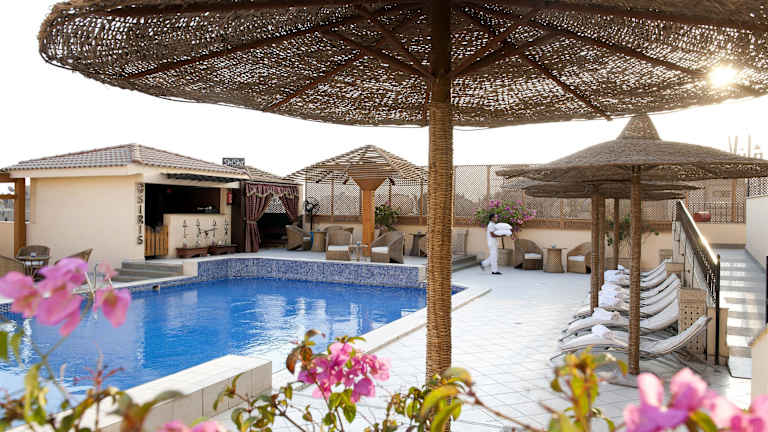 Das Barceló Cairo Pyramids Hotel verfügt über einen Außenpoolbereich, der ideal zum Entspannen und Abkühlen ist. Es gibt auch eine Terrasse mit Sonnenliegen und Sonnenschirmen, wo Sie sich entspannen und die Sonne genießen können. Für diejenigen, die gerne aktiv sind, gibt es einen Fitnessraum, der sich perfekt für ein umfassendes und abwechslungsreiches Work-Out eignet. Im Wellnessbereich des Hotels können Sie verschiedene Wellnessangebote wie Spa, Sauna, Dampfbad, Massage-Anwendungen und Solarium genießen. Eine Disco und ein Nachtclub sorgen für Spaß und Unterhaltung.