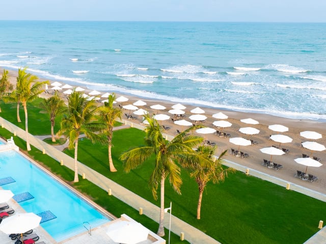 Barcelo Mussanah Resort is one of Oman’s leading beachfront hotels and a gateway renowned for relaxation and recreation, surrounded by tranquil views of its very own marina, the Gulf of Oman, and the Al Hajar Mountains. The lifestyle destination resort is just 45 minutes from Muscat International Airport and close to the neighbouring cities of Barka and Sohar. With panoramic views of the sea, the resort has something for everyone and caters to seafaring guests with a private 54-berth marina, conferencing facilities for discerning business visitors, offers a diverse range of sports activities for leisure travellers and luxurious pools with exclusive beach access for holidaymakers. Guests can relax in idyllic surroundings and take in all of the spectacular natural beauty that the Sultanate of Oman has to offer. Barcelo Mussanah Resort features 234 spacious hotel rooms in a range of options to suit every need including Deluxe, Executive, and Junior Suites, 74 fully-furnished serviced apartments comprising of studios, one-bedroom, and two-bedroom duplex apartments. Each room offers impressive views of the Al Hajar Mountains, the Marina, or the Gulf of Oman. The resort also offers a choice of culinary options including a poolside bar open until sunset, two more modern bars, an à la carte restaurant, and a welcoming buffet all with private terraces facing the sea.