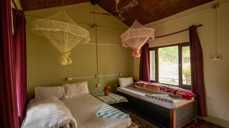 Die Zimmer im Bardia Riverside View Park Resort sind komfortabel eingerichtet und verfügen über einen eigenen Balkon mit Blick auf den Garten. Jedes Zimmer verfügt über ein eigenes Badezimmer mit Dusche und Hausschuhen. Bettwäsche und Handtücher werden gestellt.