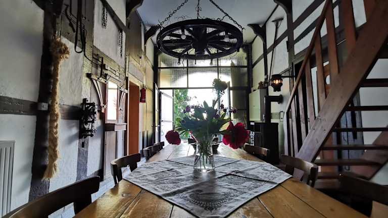 Der Ferienhof Ehlers bietet keine Verpflegung vor Ort an. Die voll ausgestattete Küche in den Unterkünften ermöglicht es Ihnen jedoch, Ihre eigenen Mahlzeiten zuzubereiten. Alternativ können Sie in den umliegenden Restaurants speisen und die regionale Küche genießen.