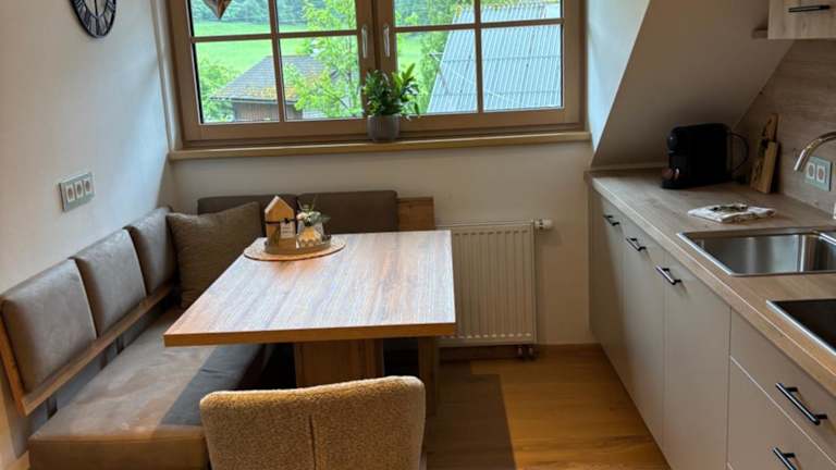 Im Schmiedbauernhof können Sie Ihre eigenen Mahlzeiten in der voll ausgestatteten Küche zubereiten. Alternativ können Sie den Grill im Freien nutzen und ein köstliches Barbecue genießen. In der Umgebung finden Sie auch verschiedene Restaurants und Cafés, in denen Sie lokale Spezialitäten probieren können.