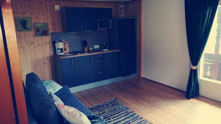 Die Wohneinheiten sind mit einem Balkon ausgestattet, der einen Blick auf die Berge bietet. Sie verfügen über eine Küche mit Kühlschrank und Herdplatte sowie ein eigenes Badezimmer mit Dusche. Haustiere sind gestattet, und es gibt Nichtraucherzimmer. Familienzimmer sind ebenfalls vorhanden.