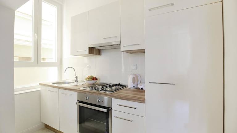 Die Ferienwohnung besteht aus einem Schlafzimmer, einem Wohnzimmer und einer voll ausgestatteten Küche, die mit einem Kühlschrank und einem Wasserkocher ausgestattet ist. Zudem gibt es ein Badezimmer mit einer Dusche und kostenlosen Pflegeprodukten. Handtücher und Bettwäsche werden bereitgestellt.