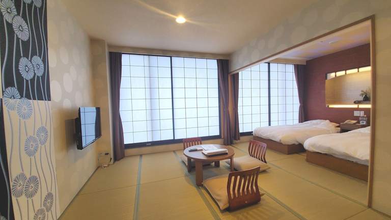 Die Zimmer im Bayside Square Kaike Hotel sind komfortabel und modern eingerichtet. Jedes Zimmer verfügt über einen Sitzbereich mit traditionellen Tatami-Matten, kostenfreien Internetzugang (LAN) und WLAN sowie einen atemberaubenden Blick auf die Bucht. Zur Ausstattung gehören auch ein LCD-Sat-TV, ein Kühlschrank und ein eigenes Badezimmer mit Pflegeprodukten.