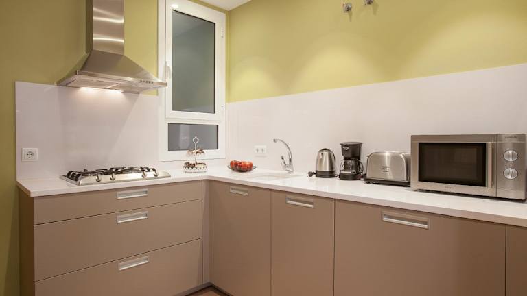 Die Unterkunft bietet eine voll ausgestattete Küche, die mit einem Kühlschrank und einer Kaffeemaschine ausgestattet ist. Es sind keine Informationen zu weiteren Verpflegungsmöglichkeiten vorhanden.