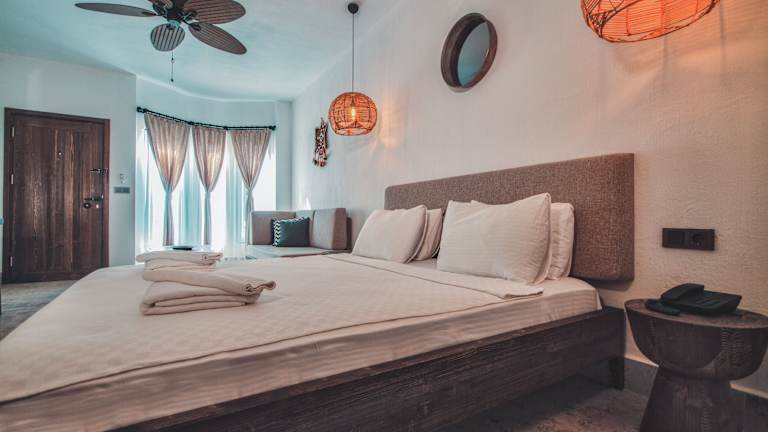 Die klimatisierten Zimmer im Beach 222 Ölüdeniz sind komfortabel und bieten einen Balkon mit Meerblick. Zur Ausstattung gehören ein Flachbild-TV, Handtücher und Bettwäsche. Hier können Sie sich entspannen und den Blick auf das Meer genießen.
