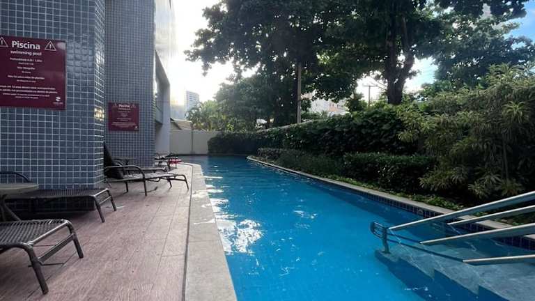 Die Beach Class Convention - Boa Viagem bietet eine ungestörte Atmosphäre für Gäste, die eine entspannte Unterkunft suchen. Es handelt sich um eine klimatisierte Ferienwohnung, die mit modernen Annehmlichkeiten ausgestattet ist. Eine Bar ist ebenfalls vorhanden, die den Gästen die Möglichkeit bietet, Erfrischungen in einem angenehmen Ambiente zu genießen. Die Unterkunft ist Nichtraucher und verfügt über verschiedene Einrichtungen wie eine Sauna sowie kostenlosen WLAN-Zugang.