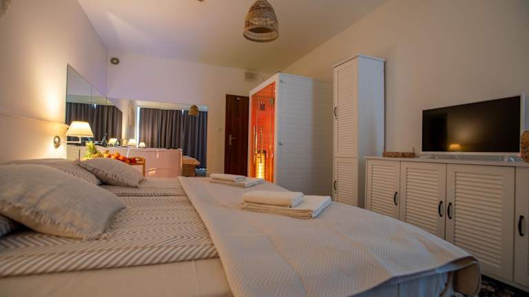 Die Beach Family Premium SPA Suite Private Jacuzzi, Sauna & Sea View ist eine Unterkunft, die mit einer Terrasse und einem Restaurant ausgestattet ist. Das Anwesen bietet Übernachtungsmöglichkeiten mit kostenlosem WLAN und einem Blick auf das Meer. Es handelt sich um eine Ferienwohnung, die eine zentrale Lage und verschiedene Annehmlichkeiten bietet. Die Mindestaltergrenze für den Check-in liegt bei 25 Jahren. In dieser Unterkunft sind Partys und Junggesellenfeiern nicht gestattet. Die Buchung erfolgt über kontaktlose Zahlungsmethoden und die Unterkunft sendet nach der Buchung weitere Informationen zur Bezahlung.