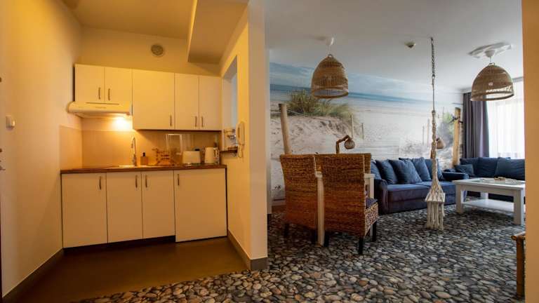 Die Unterkunft befindet sich in Kołobrzeg, etwa 300 Meter vom Strand Kolobrzeg entfernt. Die Umgebung bietet Möglichkeiten zum Wandern und Radfahren. Das Rathaus von Kołobrzeg liegt 3,4 Kilometer von der Unterkunft entfernt. Der nächstgelegene Flughafen ist der Flughafen Stettin-Goleniów, der sich 105 Kilometer entfernt befindet.