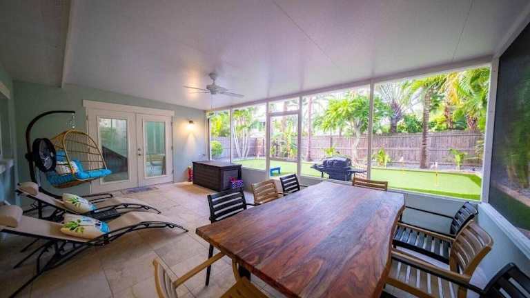 Das Beach house w/Putting Green/Game Rm/Rooftop Deck in Cocoa Beach ist die perfekte Unterkunft für Ihren Strandurlaub. Mit einer Terrasse und Zugang zu einem Balkon können Sie die frische Meeresluft und die herrliche Aussicht genießen. Das klimatisierte Ferienhaus bietet Platz für bis zu 6 Personen und verfügt über 3 Schlafzimmer, einen geräumigen Wohnbereich mit einem Flachbild-TV und eine voll ausgestattete Küche. Sie können auch das kostenfreie WLAN nutzen und Ihr Auto auf den kostenfreien Privatparkplätzen abstellen. Die Lage des Ferienhauses ist ideal, nur wenige Schritte vom South Cocoa Beach und weniger als 1 km vom Cocoa Beach entfernt. Der Tables Beach ist ebenfalls in nur 15 Gehminuten erreichbar. In der Umgebung gibt es auch viele andere Aktivitäten und Sehenswürdigkeiten zu entdecken, wie die United States Coast Guard Station Port Canaveral Wharf und den Hafen von Port Canaveral, die beide etwa 18 km bzw. 19 km entfernt sind. Der internationale Flughafen Melbourne ist der nächstgelegene Flughafen und etwa 23 km vom Ferienhaus entfernt.