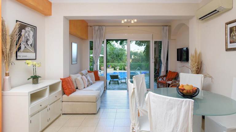 Die Beach Villa Blue by MediterraneanVillas bietet Platz für bis zu vier Personen und ist ideal für Familien oder Paare, die einen privaten und komfortablen Aufenthalt suchen. Die Villa verfügt über zwei klimatisierte Schlafzimmer, in denen Sie nach einem Tag am Strand zur Ruhe kommen können. Das geräumige Wohnzimmer lädt zum Entspannen ein und bietet einen Flachbild-TV für Unterhaltung. Die voll ausgestattete Küche ermöglicht es Ihnen, Ihre eigenen Mahlzeiten zuzubereiten, und die beiden Badezimmer bieten Ihnen Komfort und Privatsphäre. Ein Highlight der Villa ist der private Pool, in dem Sie sich an heißen Tagen erfrischen können. Kostenloses WLAN und kostenfreie Privatparkplätze stehen Ihnen ebenfalls zur Verfügung.