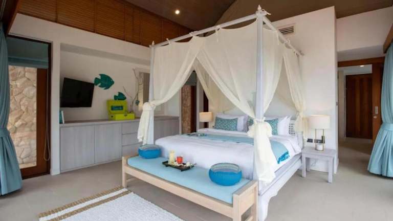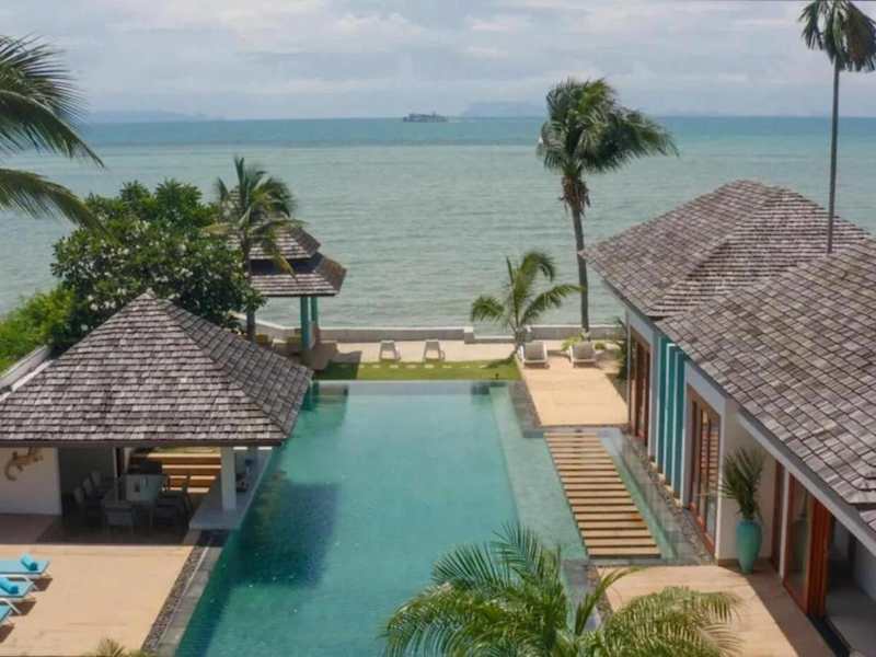 Die Beachfront 5Br Luxury Villa Sunsai bietet einen eigenen Außenpool, eine Terrasse mit Meer- und Gartenblick, einen Fitnessraum sowie eine Sauna. Die Villa ist klimatisiert und verfügt über 5 Schlafzimmer, ein Wohnzimmer und eine voll ausgestattete Küche. Das Design der Villa bietet einen komfortablen und luxuriösen Aufenthalt.