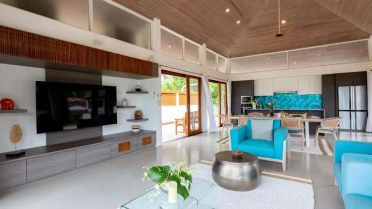 Die Villa verfügt über insgesamt 5 Schlafzimmer und 7 Badezimmer, darunter eine Badewanne mit kostenlosen Pflegeprodukten. Zudem sind Handtücher und Bettwäsche vorhanden. Die Zimmer sind klimatisiert und bieten ausreichend Platz für eine Familie oder Gruppenausflüge.